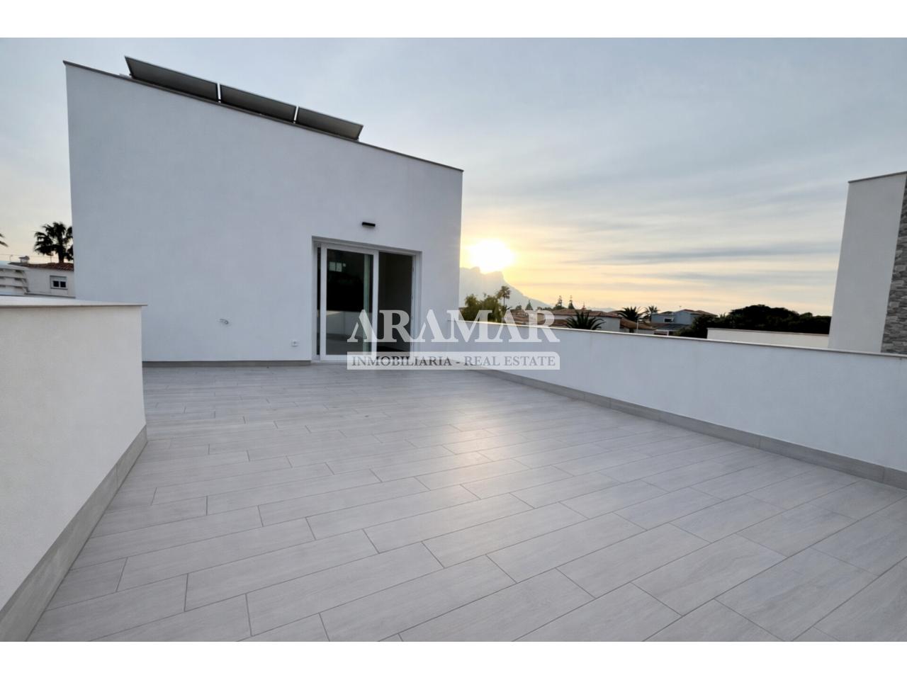 La vivienda destaca por su diseño moderno y funcional, con tres amplias habitaciones dobles y un espectacular espacio abierto donde la cocina se integra con el salón-comedor, creando un ambiente luminoso, elegante y perfectamente conectado con el exterior. Grandes ventanales potencian la entrada de luz natural y permiten disfrutar del paisaje desde el interior.